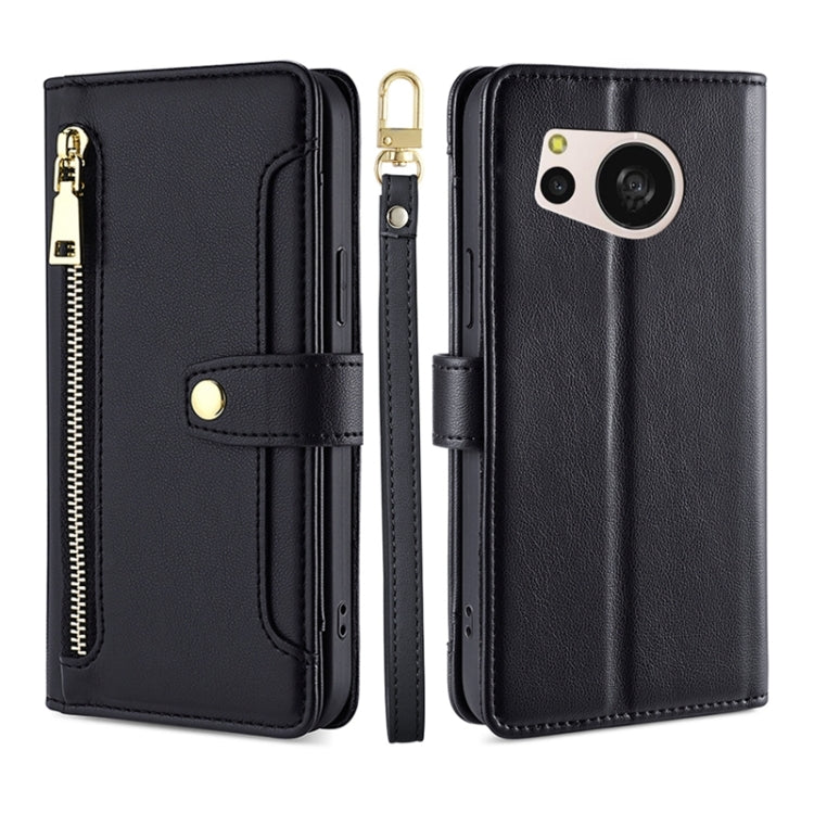 Funda de Cuero para Sharp Aquos Sense8 Lite con Billetera, Cremallera y Textura de Oveja (Negro)