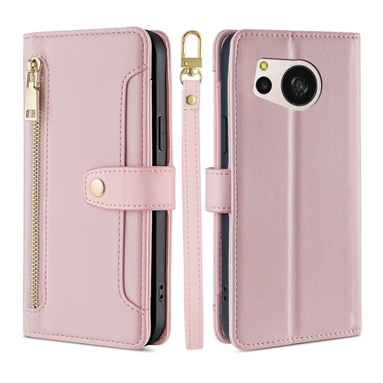 Funda de Cuero para Sharp Aquos Sense8 Lite con Billetera, Cremallera y Textura de Oveja (Rosa)
