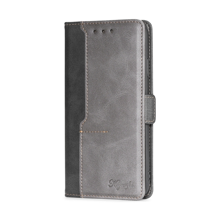Caja de Teléfono de Cuero para Sharp Aquos Wish 3 con Hebilla Lateral y Contraste (Negro + Gris)