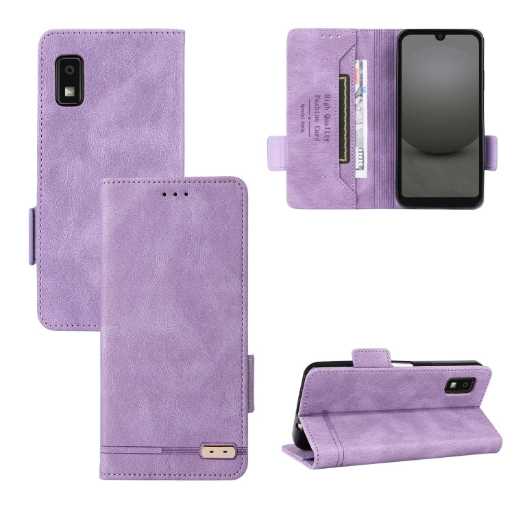 Funda de Cuero para Sharp Aquos Wish 3 con Cierre Magnético (Púrpura)