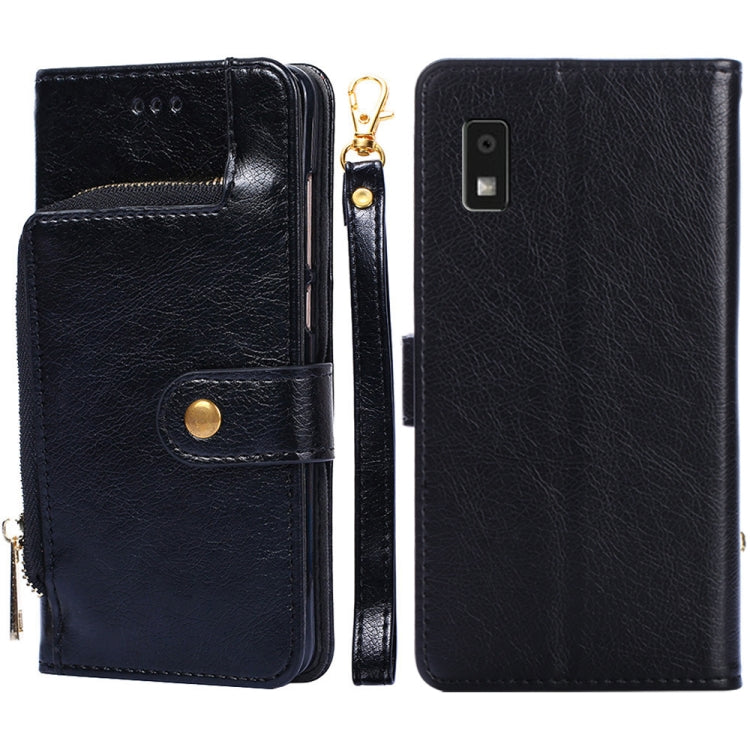 Funda de Cuero con Cremallera para Sharp Aquos Wish 3 (Negro)