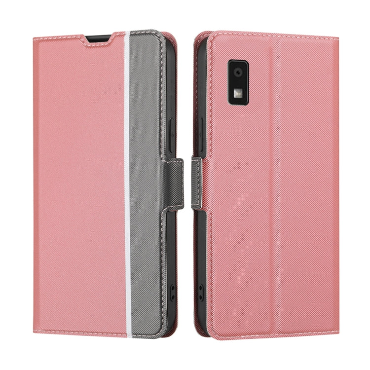 Funda de Cuero para Sharp Aquos Wish 3 con Textura Twill y Botones Laterales (Rosa)