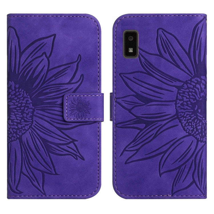 Funda Flip de Cuero para Sharp Aquos Wish con Cordón y Patrón Sun Flower (Morado Oscuro)