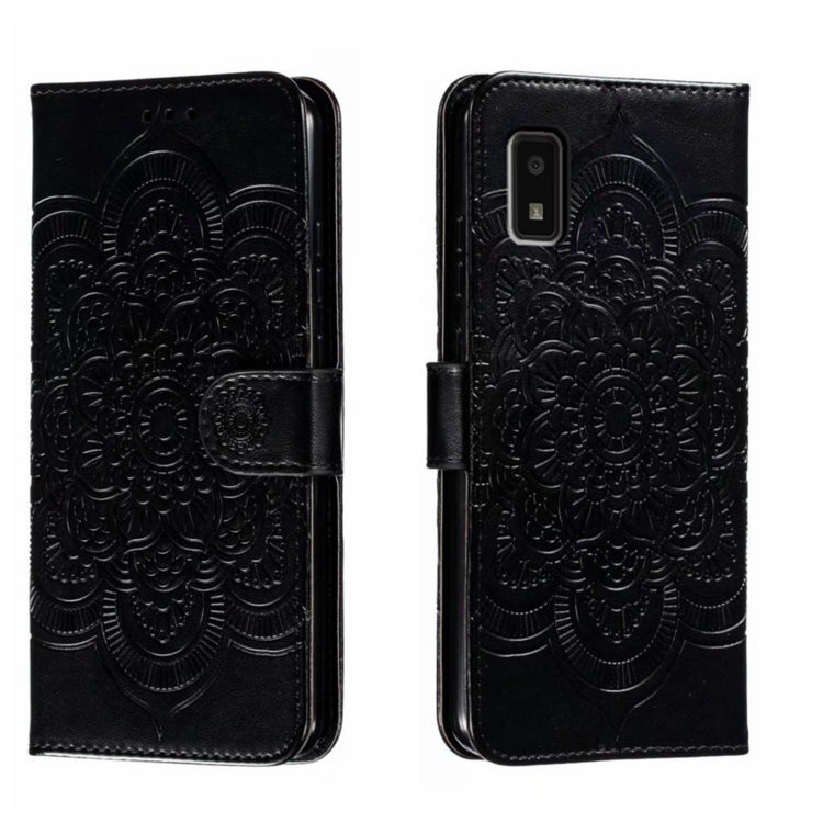 Funda de Cuero para Sharp Aquos Wish con Patrón En Relieve Sun Mandala (Negro)