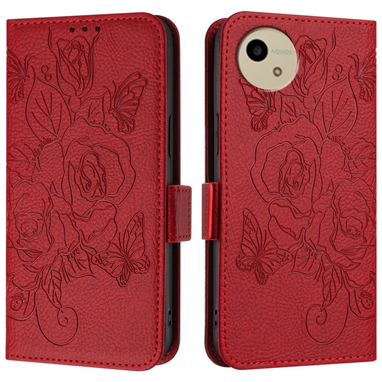 Funda de Cuero Antirrobo RFID para Sharp Aquos Wish4 con Rosa en Relieve (Rojo)