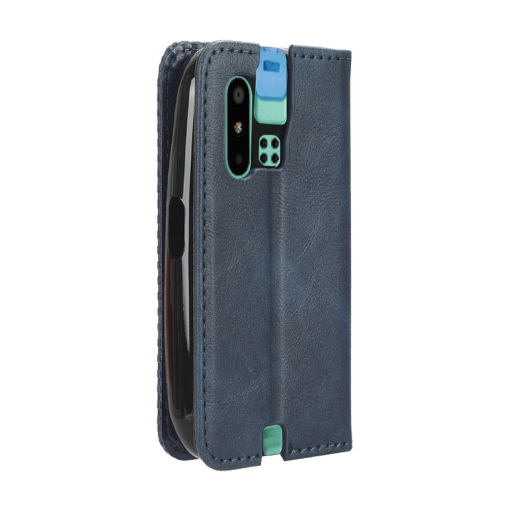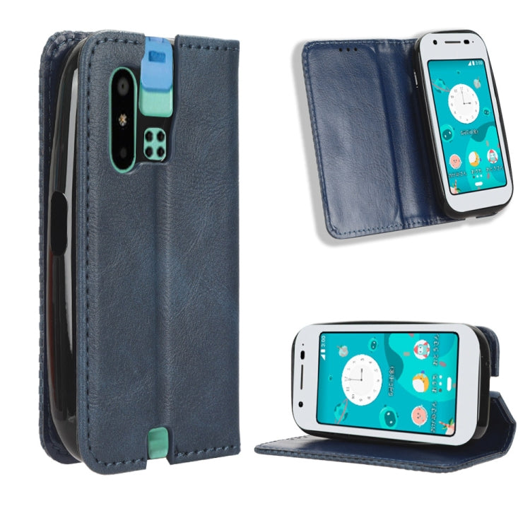 Funda de Cuero para Sharp Mamorino6 con Hebilla Magnética y Textura Retro (Azul)