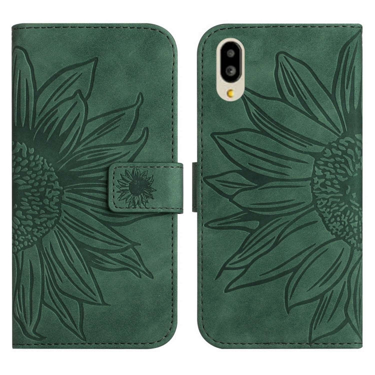 Funda Flip de Cuero para Sharp Simple Sumaho 6 con Cordón y Diseño Sun Flower (Verde)