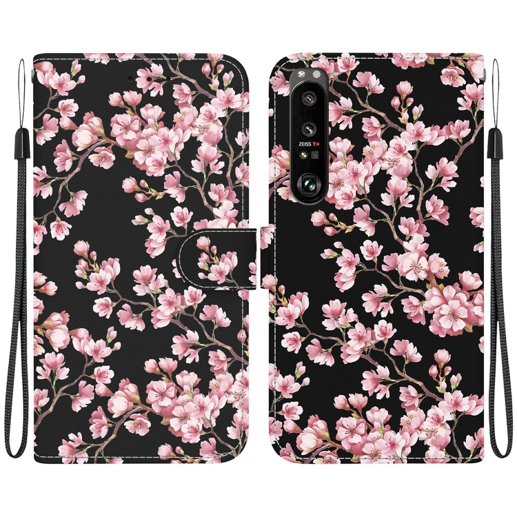 Estuche para Sony Xperia 1 III de Cuero con Dibujo Coloreado y Textura de Cristal (Flor de Ciruelo)