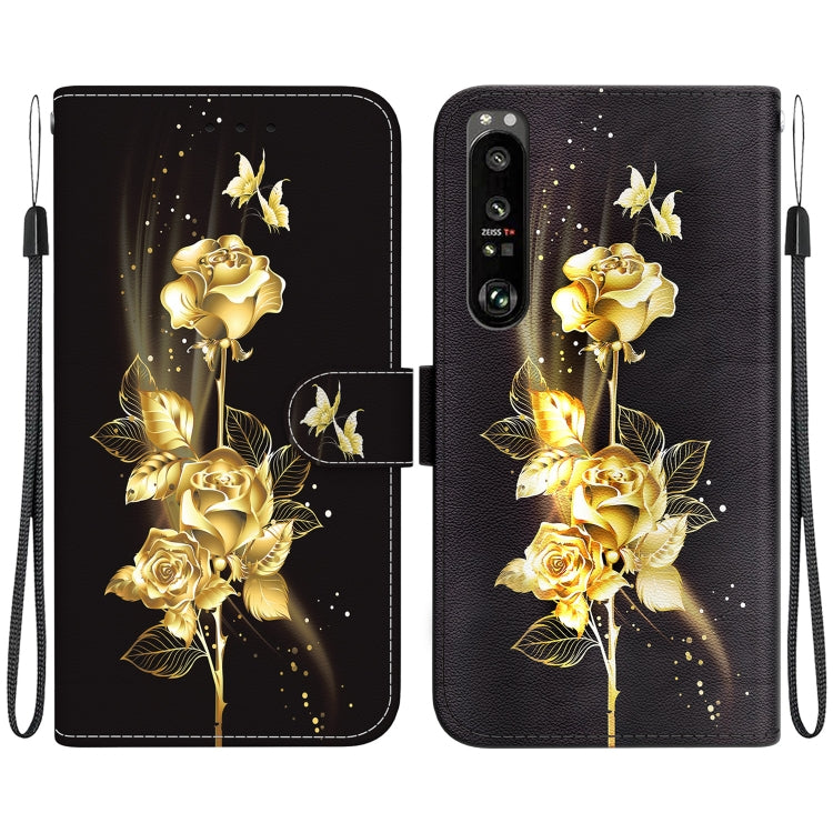 Estuche para Sony Xperia 1 III de Cuero con Dibujo Coloreado y Textura de Cristal (Mariposa Dorada Rosa)
