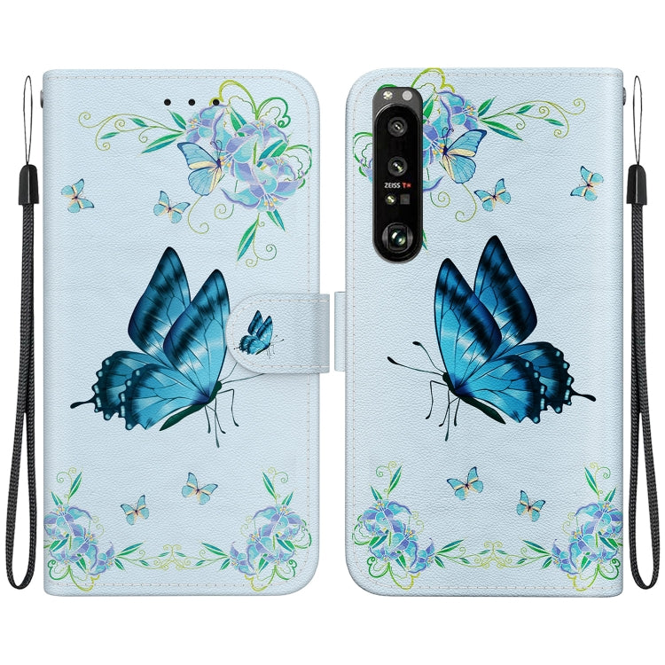 Estuche para Sony Xperia 1 III de Cuero con Dibujo Coloreado y Textura de Cristal (Azul)