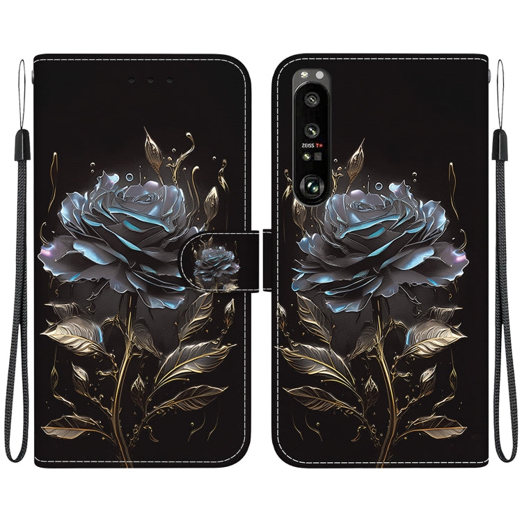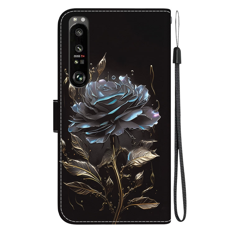 Estuche para Sony Xperia 1 III de Cuero con Dibujo Coloreado y Textura de Cristal (Rosa Negra)