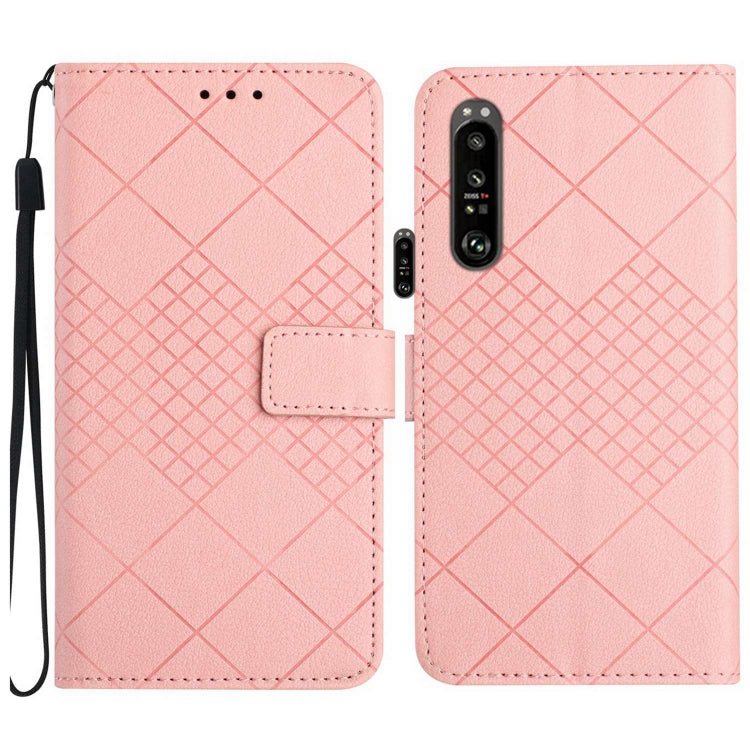 Funda de Cuero para Sony Xperia 1 III con Textura de Rejilla Rómbica (Rosa)