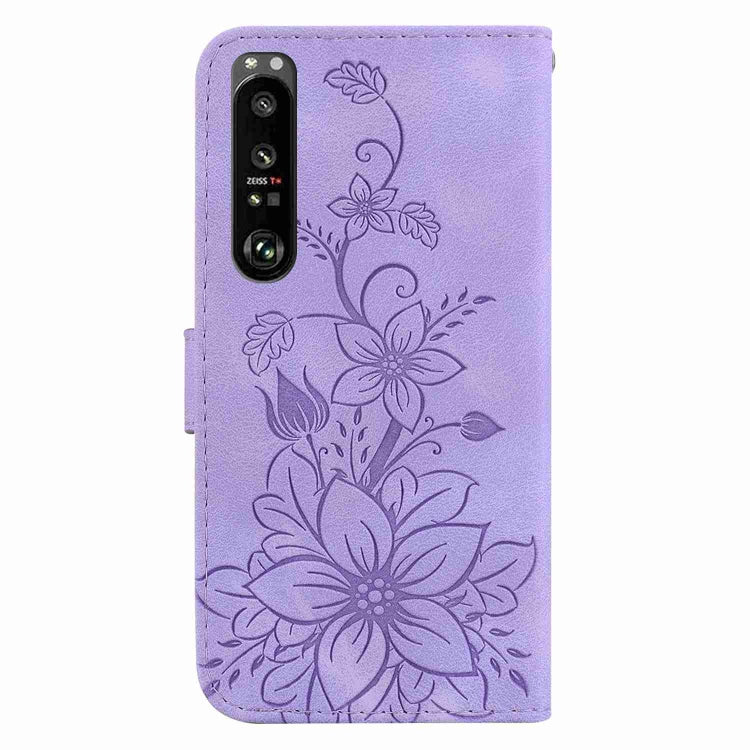 Funda de Cuero en Relieve para Sony Xperia 1 III Lily (Púrpura)