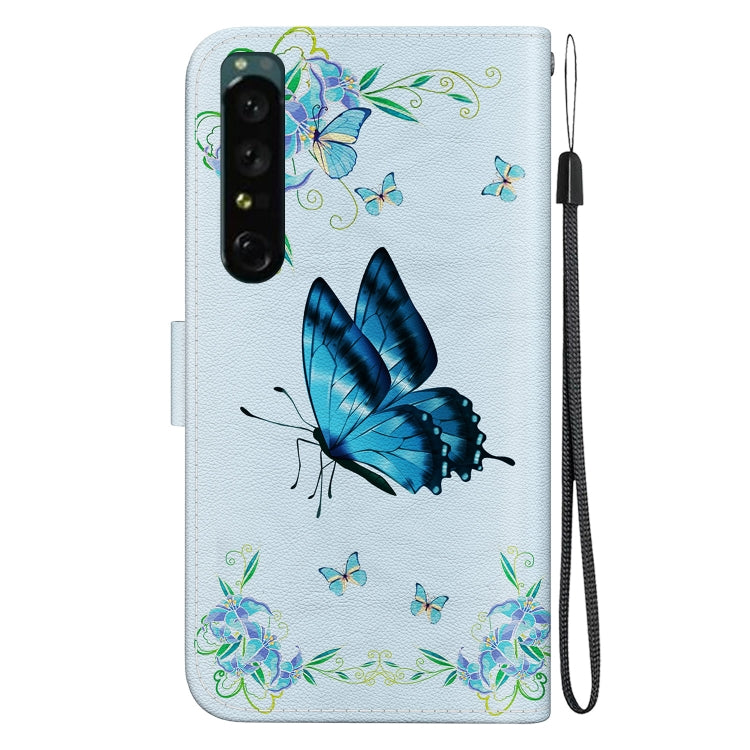 Estuche para Sony Xperia 1 IV de Cuero con Dibujo Coloreado y Textura de Cristal (Pensamientos Azules)