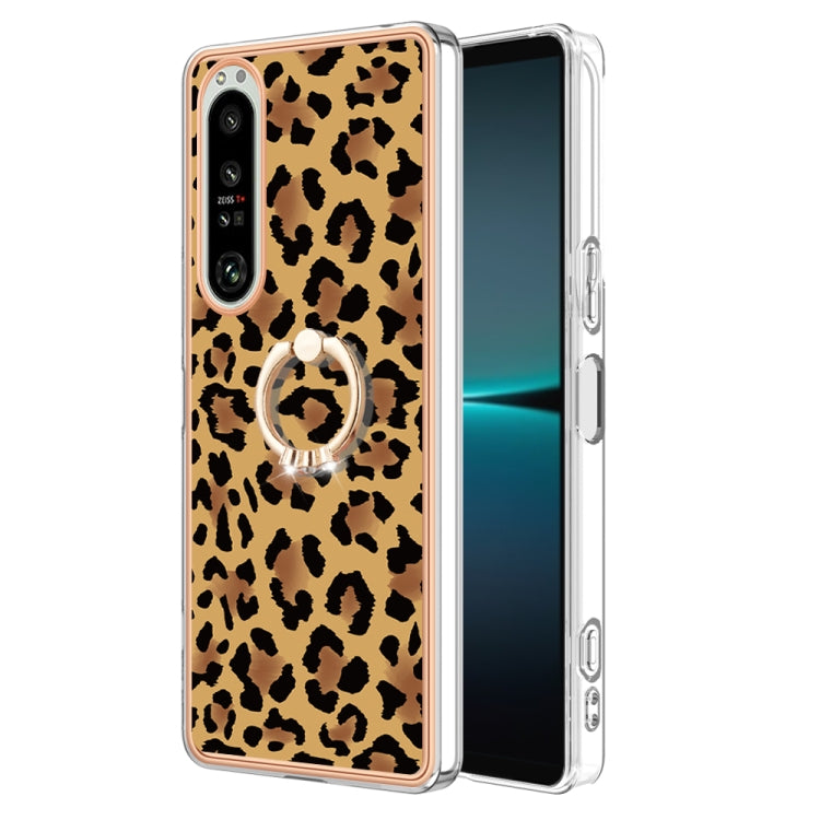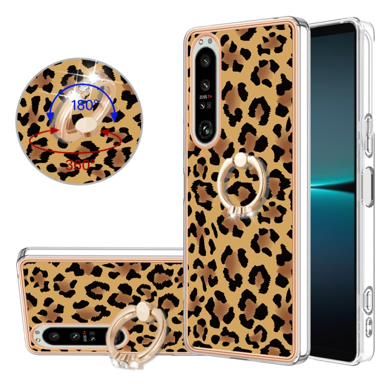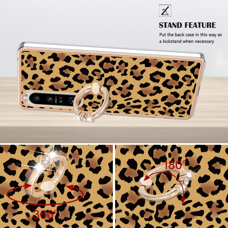 Estuche para Sony Xperia 1 IV IMD Dos Lados con Galvanoplastia y Soporte para Anillo (Leopardo)