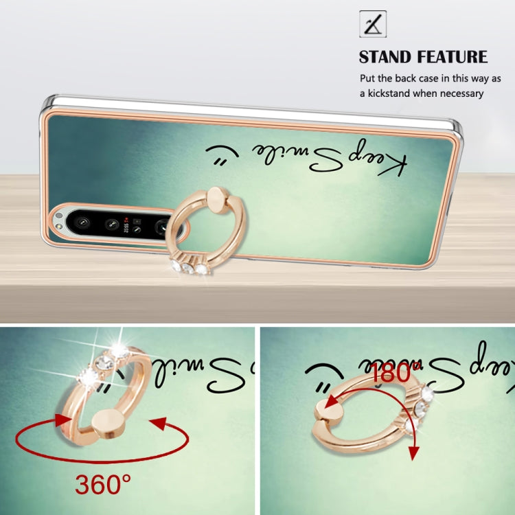 Funda para Sony Xperia 1 IV Galvanoplastia IMD Doble Cara con Soporte para Anillo (Sonrisa)