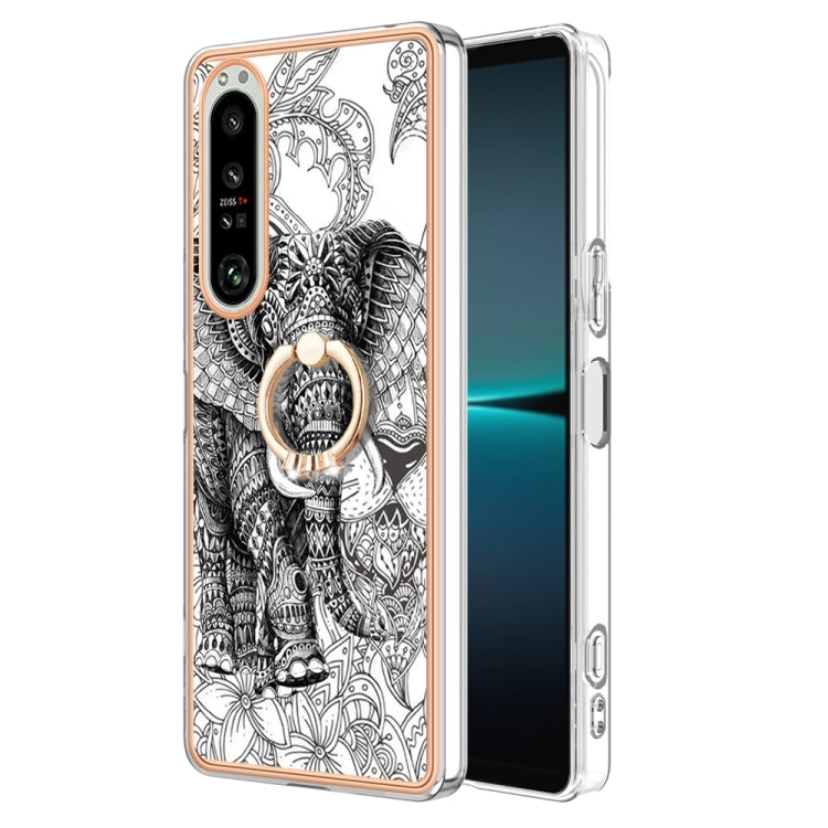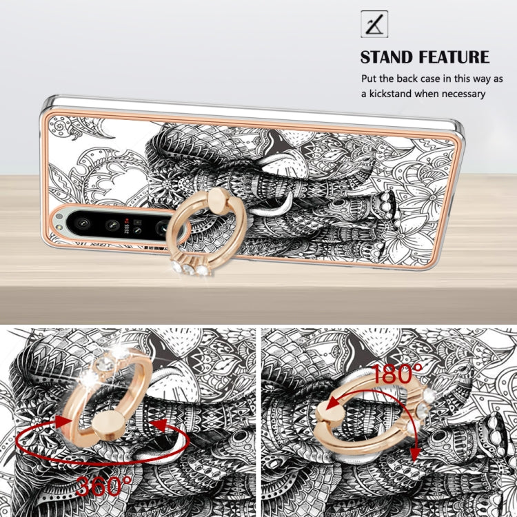 Funda para Sony Xperia 1 IV Galvanoplastia IMD Doble Cara con Soporte para Anillo (Totem Elephant)