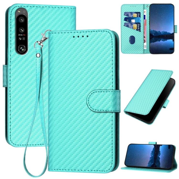 Funda de Cuero para Sony Xperia 1 IV YX0070 con Hebilla de Fibra de Carbono y Cordón (Azul Claro)