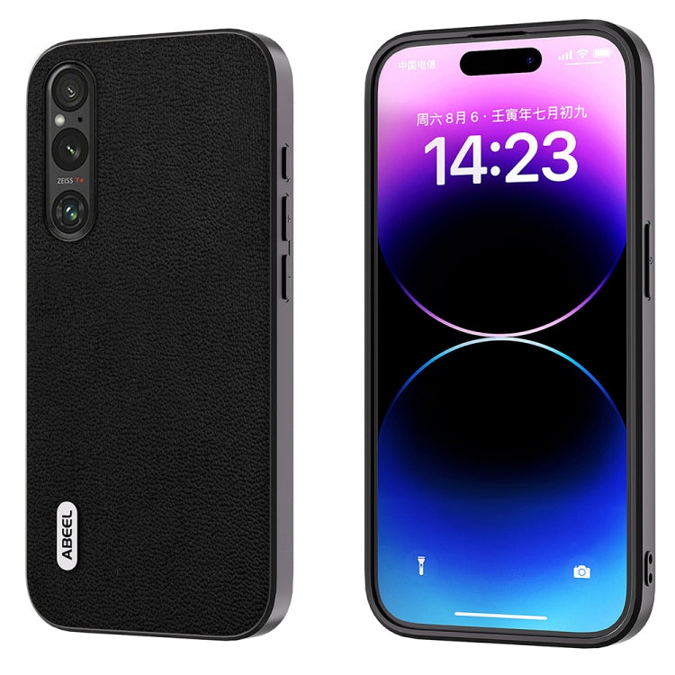 Funda para Sony Xperia 1 V Abeel Serie Luolai Cuero Genuino (Negro)
