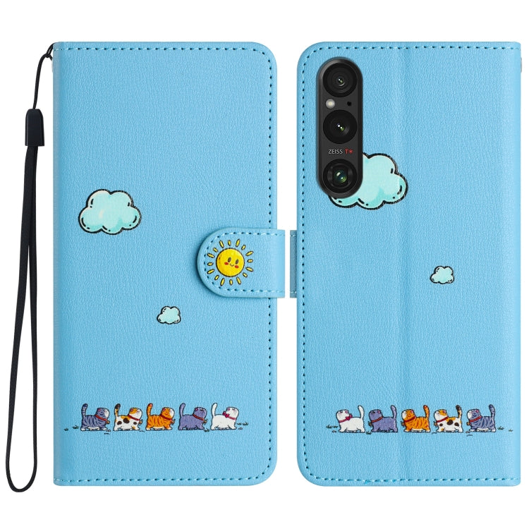 Funda de Cuero para Sony Xperia 1 V con Gatos de Dibujos Animados (Azul)