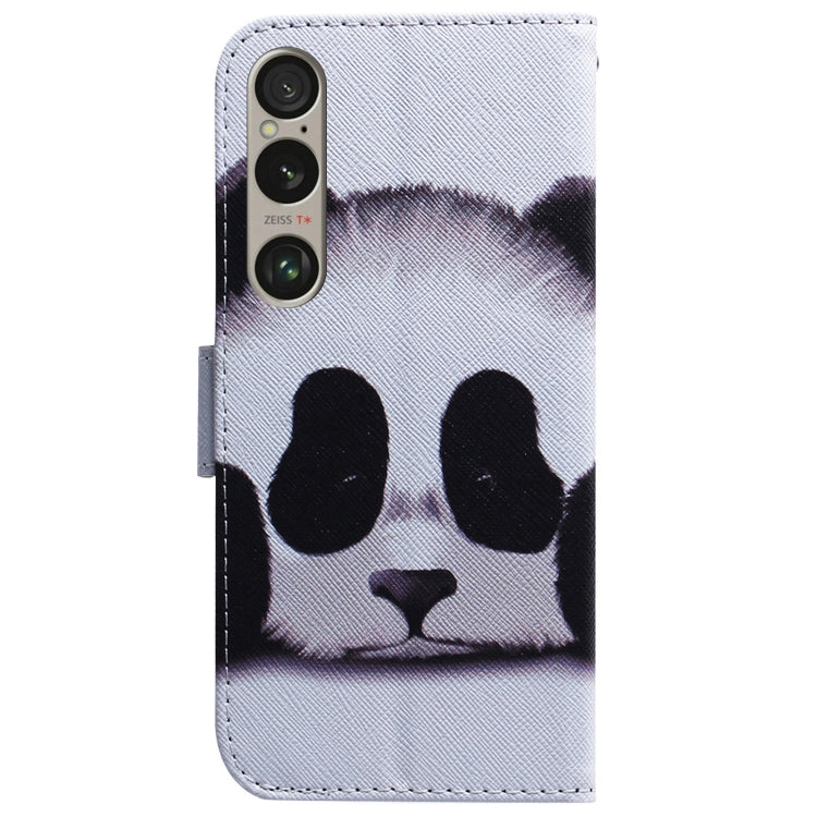 Funda de Cuero con Tapa para Sony Xperia 1 Vi con Dibujo Coloreado (Panda)
