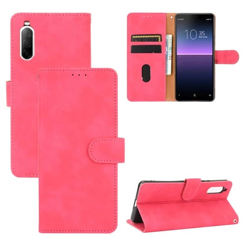 - 1x Funda Cuero PU Sony Xperia 10 II con Soporte, Ranuras y Hebilla Magnética (Rosa Roja)