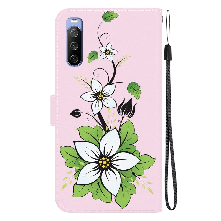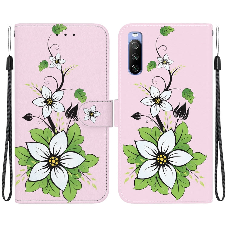 Funda para Sony Xperia 10 III de Cuero con Dibujo Coloreado y Textura de Cristal (Lily)