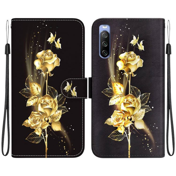 Funda para Sony Xperia 10 III de Cuero con Dibujo Coloreado y Textura de Cristal (Mariposa Dorada Rosa)