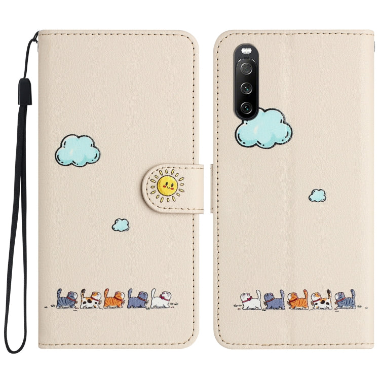 Funda de Cuero para Sony Xperia 10 Iv con Gatos de Dibujos Animados (Beige Blanco)