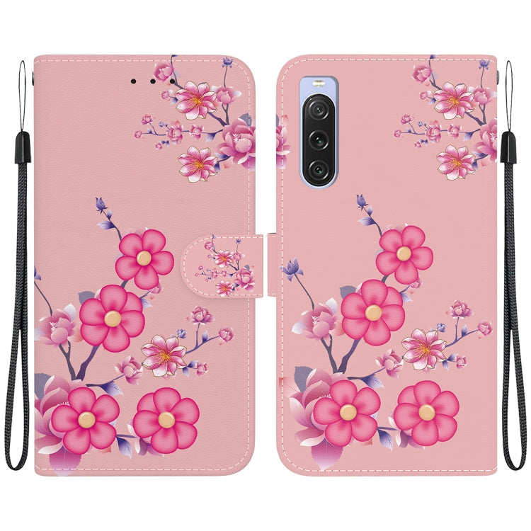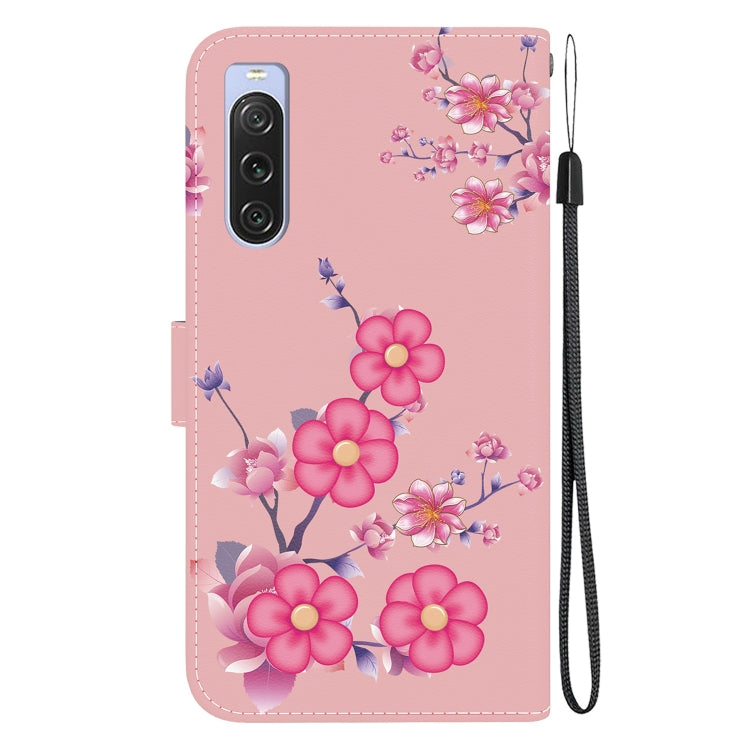 Estuche de Cuero para Sony Xperia 10 V (2023) con Dibujo Coloreado y Textura de Cristal (Flores de Cerezo)