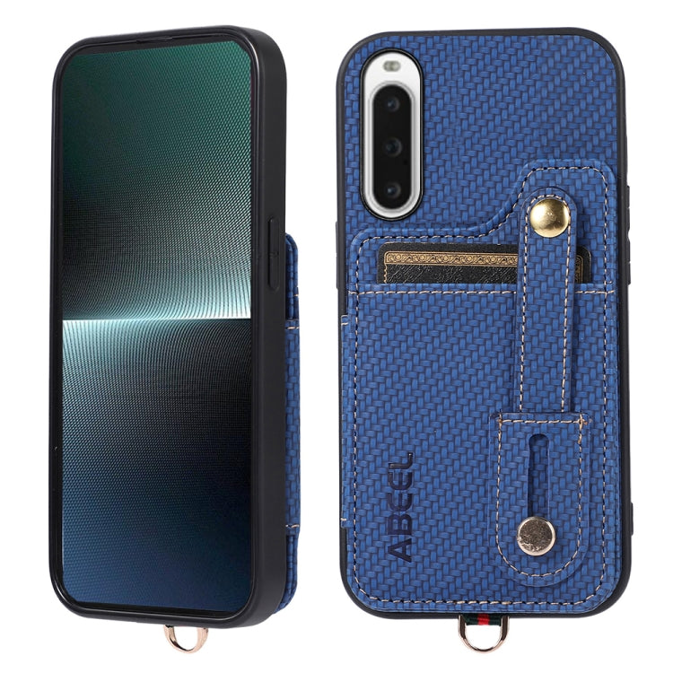 Funda para Sony Xperia 10 V Abeel con Tarjetero RFID de Fibra de Carbono (Azul)
