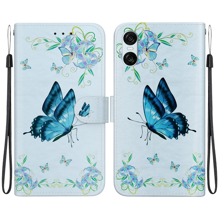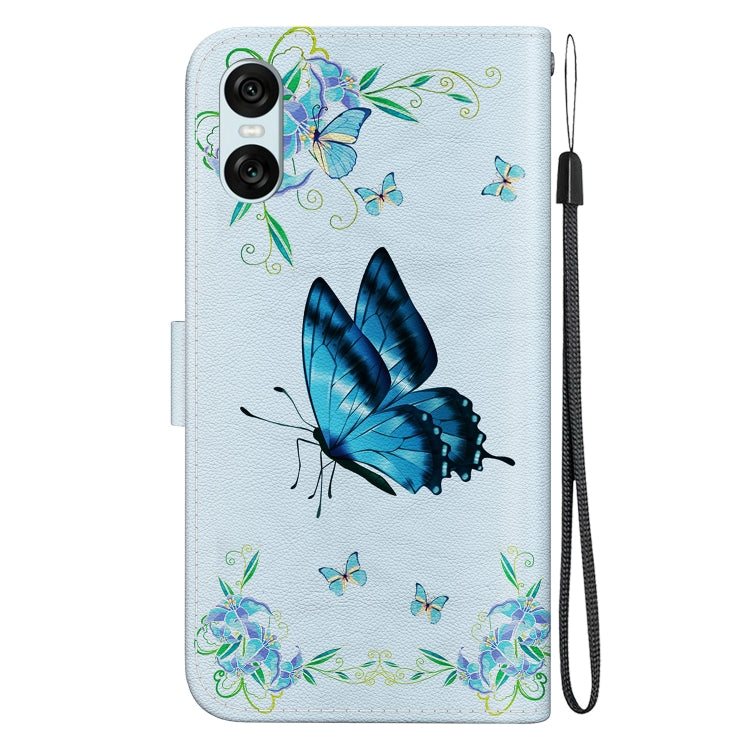 Estuche de Cuero para Sony Xperia 10 Vi con Dibujo Coloreado y Textura de Cristal (Azul)