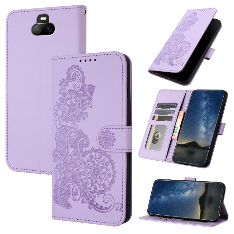 Funda de Cuero para Sony Xperia 20 Datura Flower con Tapa En Relieve (Púrpura)