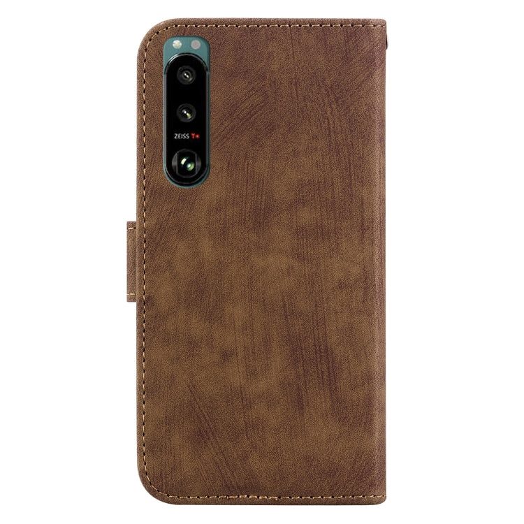 Funda de Cuero para Sony Xperia 5 III con Relieve Little Tiger (Marrón)