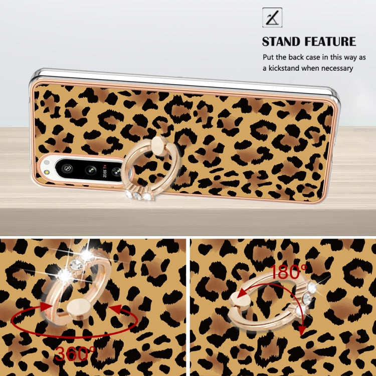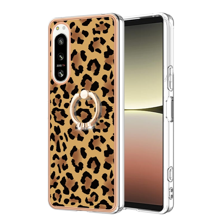 Estuche para Sony Xperia 5 IV IMD Dos Lados con Galvanoplastia y Soporte para Anillo (Leopardo)