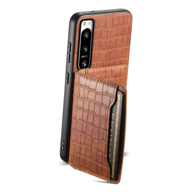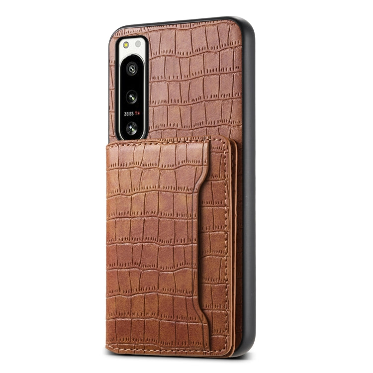 Funda para Sony Xperia 5 IV con Diseño Bolsa para Tarjetas Textura Cocodrilo (Marrón)