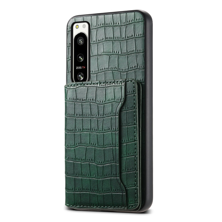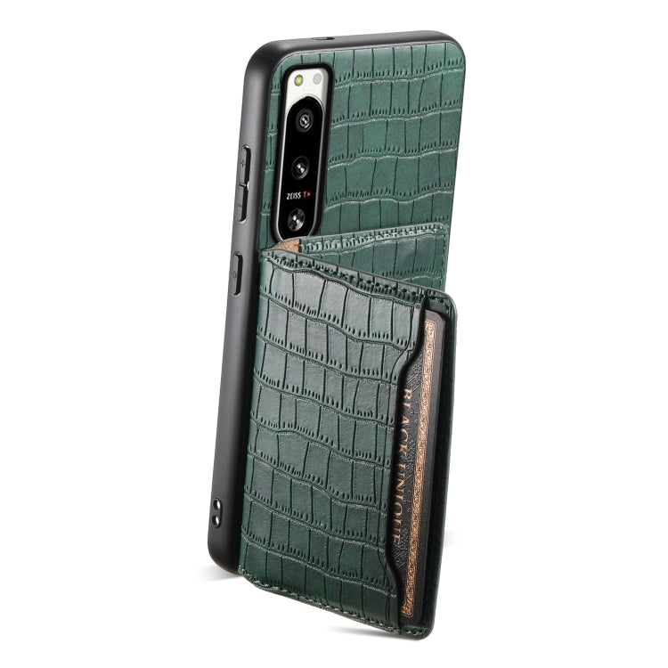Funda para Sony Xperia 5 IV con Bolsa para Tarjetas y Textura de Cocodrilo (Verde)