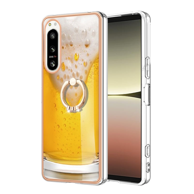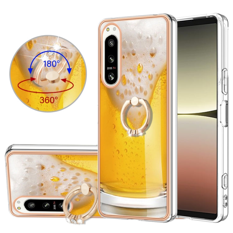 Funda para Sony Xperia 5 IV Galvanoplastia IMD Doble Cara con Soporte para Anillo (Cerveza de Barril)