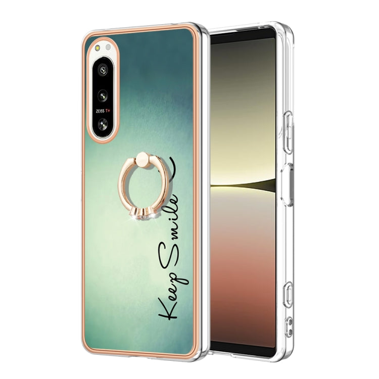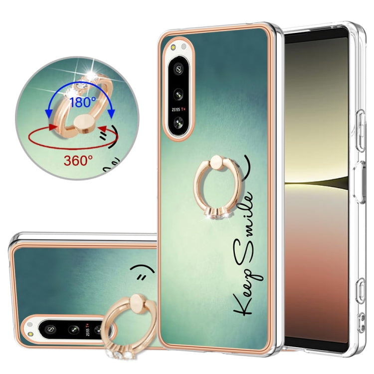 Funda para Sony Xperia 5 IV Galvanoplastia IMD Doble Cara con Soporte para Anillo (Sonrisa)
