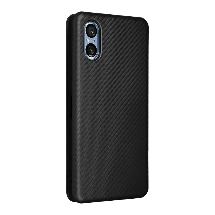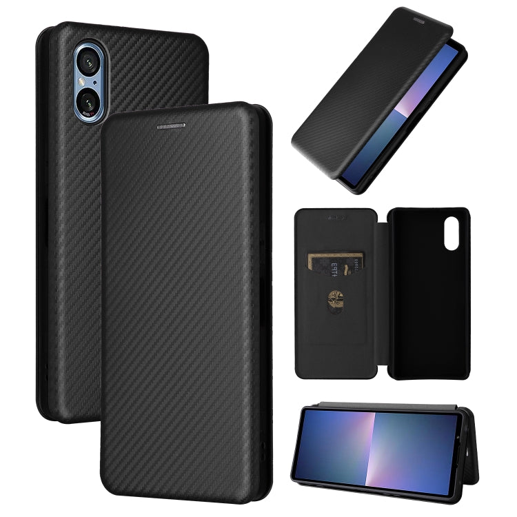 Funda de Cuero con Tapa para Sony Xperia 5 V (2023) Textura Fibra de Carbono (Negro)
