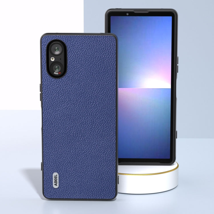 Funda para Sony Xperia 5 V Abeel Black Edge Mino de Cuero Genuino (Azul Real)