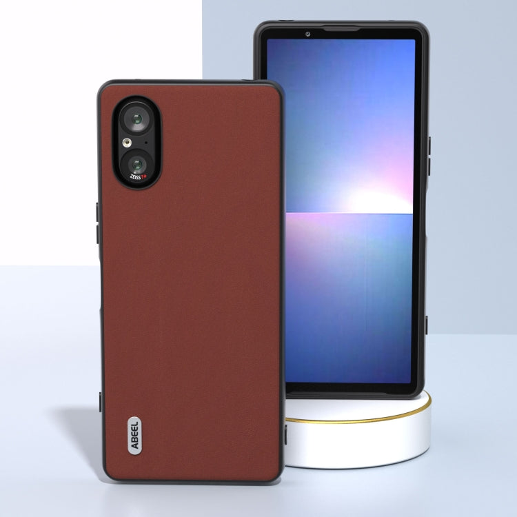 Funda para Sony Xperia 5 V Abeel Cuero Genuino Borde Negro (Café)