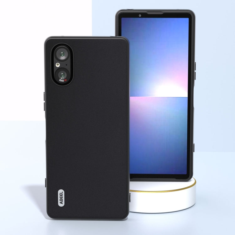 Funda para Sony Xperia 5 V Abeel Cuero Genuino con Borde Negro Suave (Negro)