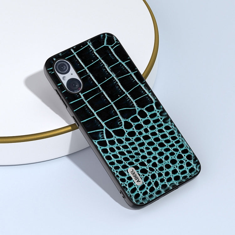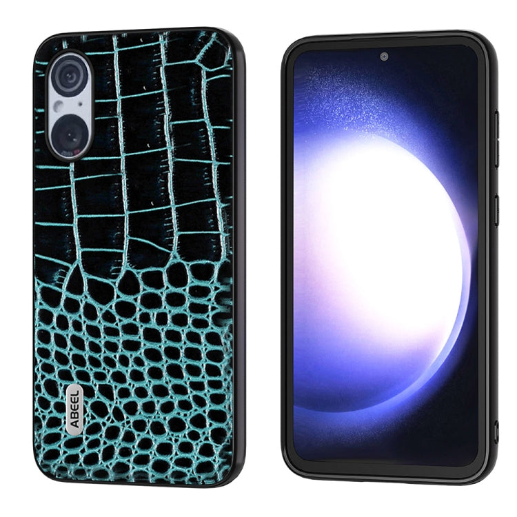Funda para Sony Xperia 5 V Abeel Cuero Genuino con Borde Negro y Patrón Cocodrilo (Azul)