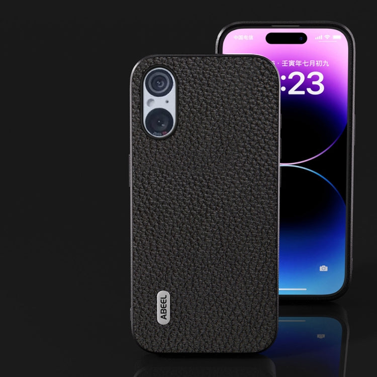 Funda para Sony Xperia 5 V Abeel Cuero Genuino Textura Litchi (Negro)