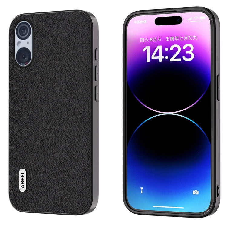 Funda para Sony Xperia 5 V Abeel Cuero Genuino Textura Litchi + PC (Negro)