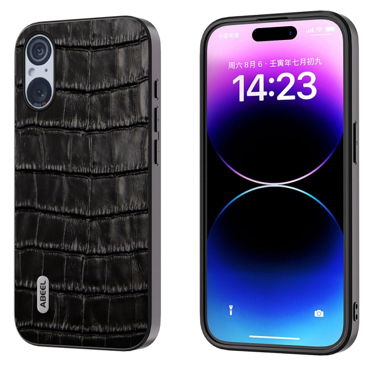 Funda para Sony Xperia 5 V Abeel Cuero Genuino Textura Cocodrilo (Negro)