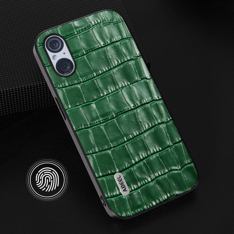 Funda para Sony Xperia 5 V Abeel Cuero Genuino Textura Cocodrilo (Verde)