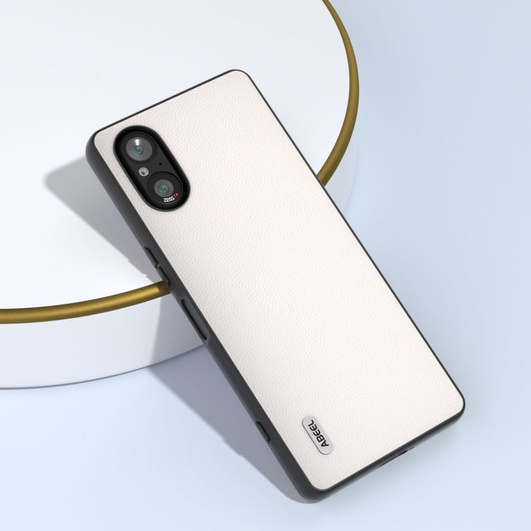 Funda para Sony Xperia 5 V Abeel Cuero Genuino con Borde Negro (Blanco)