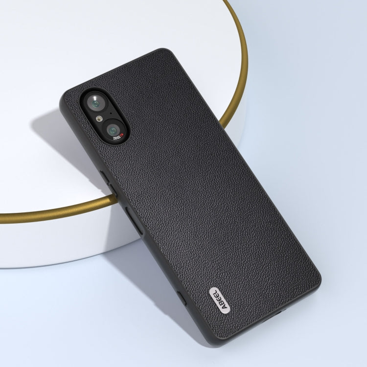 Funda para Sony Xperia 5 V Abeel Cuero Genuino con Borde Negro (Negro)